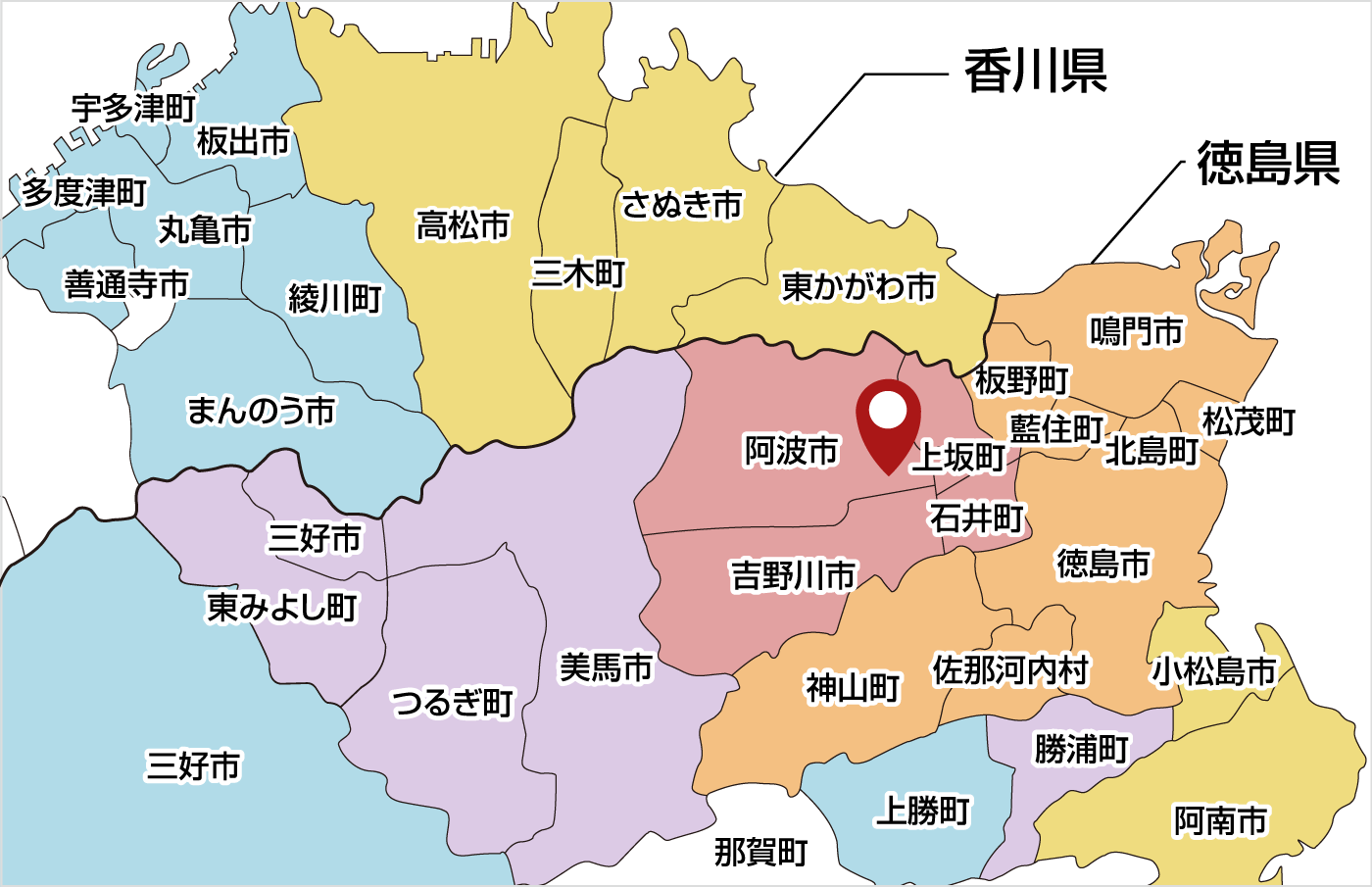 【徳島県】徳島市、鳴門市、佐那河内村、神山町、板野郡(上板以外)